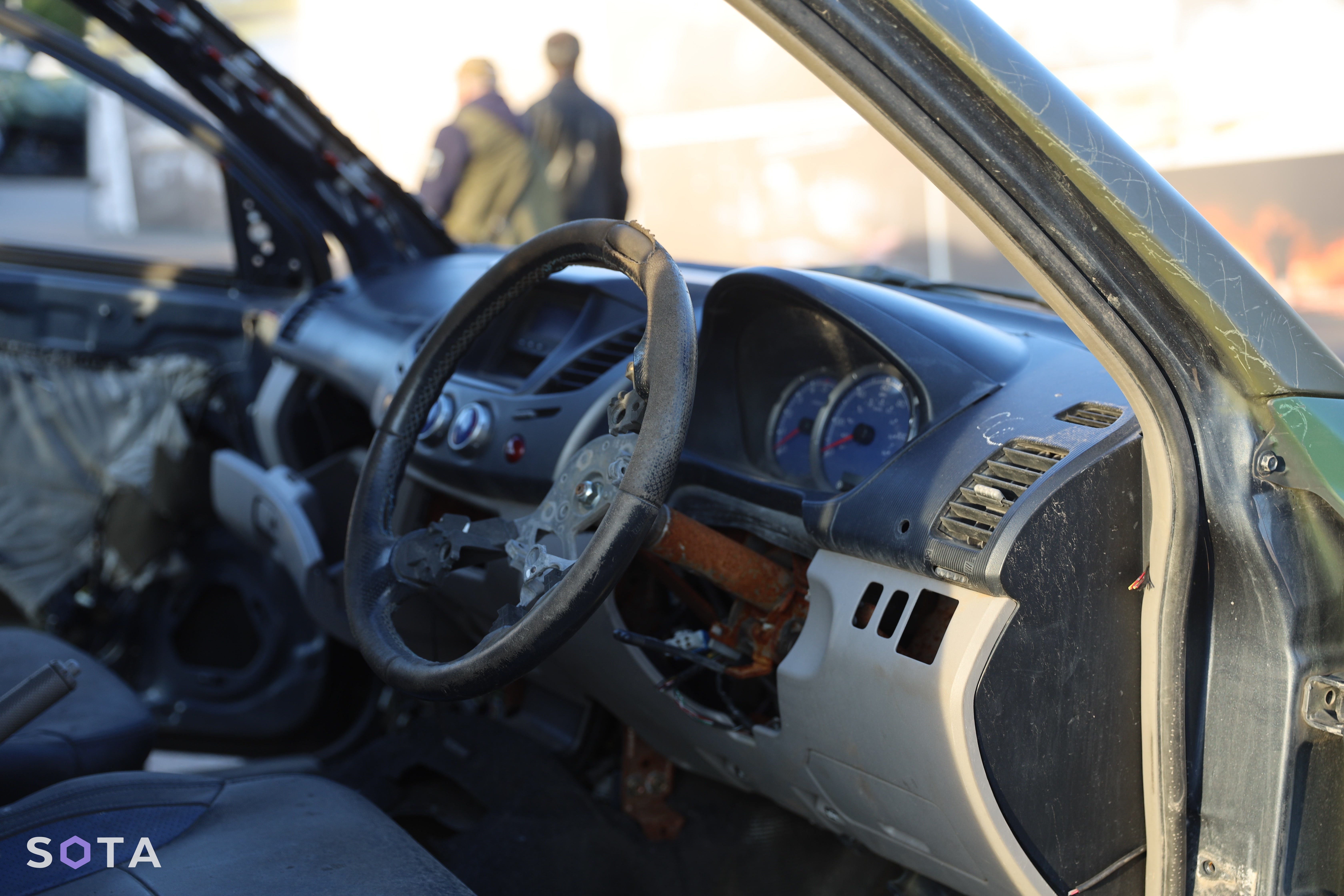 Похоже, кстати, что некоторые экспонаты для придания пущей живописности подверглись «посмертному» тюнингу при помощи горелки и кувалды. Например, кабина американского MRAP MaxxPro представляет собой сплошное обгорелое крошево, а на двери с внутренней стороны броневика — неповрежденная «родная» краска, проводка даже не оплавилась, и сохранились заводские наклейки.