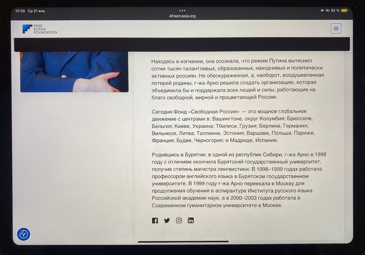 Мы уже рассказывали о главе фонда Наталии Арно (Будаевой по первому мужу), но после нашей публикации в редакцию SOTA обратились ее бывшие коллеги по российскому отделению IRI – они указали на новые данные, существенно дополняющие ее биографию.