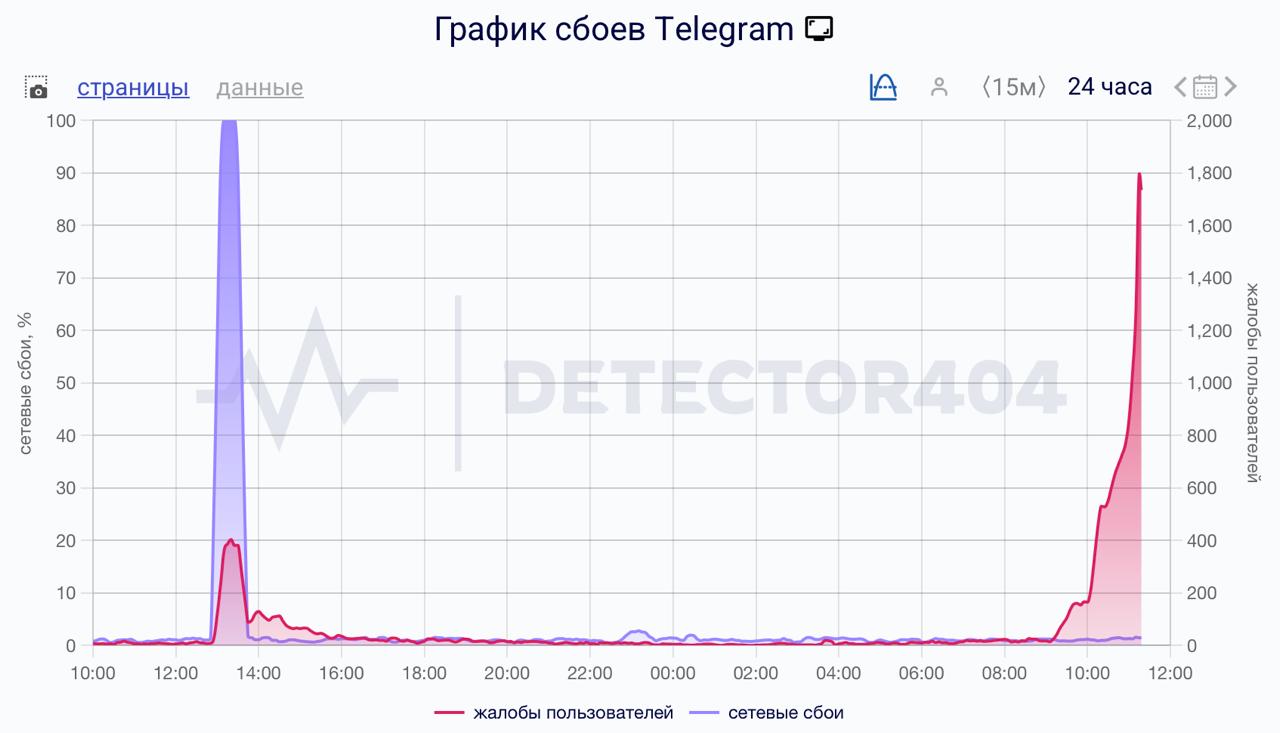 Число жалоб на неполадки в Telegram резко выросло за последние часы. Об этом свидетельствуют данные сервиса Downdetector.