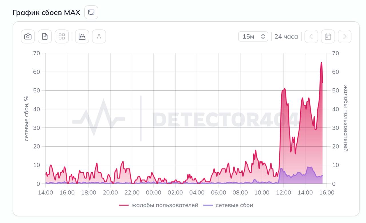 В работе российского государственного мессенджера зафиксированы новые неполадки. Об этом свидетельствуют данные сервисов detector404 ru и Сбой рф.