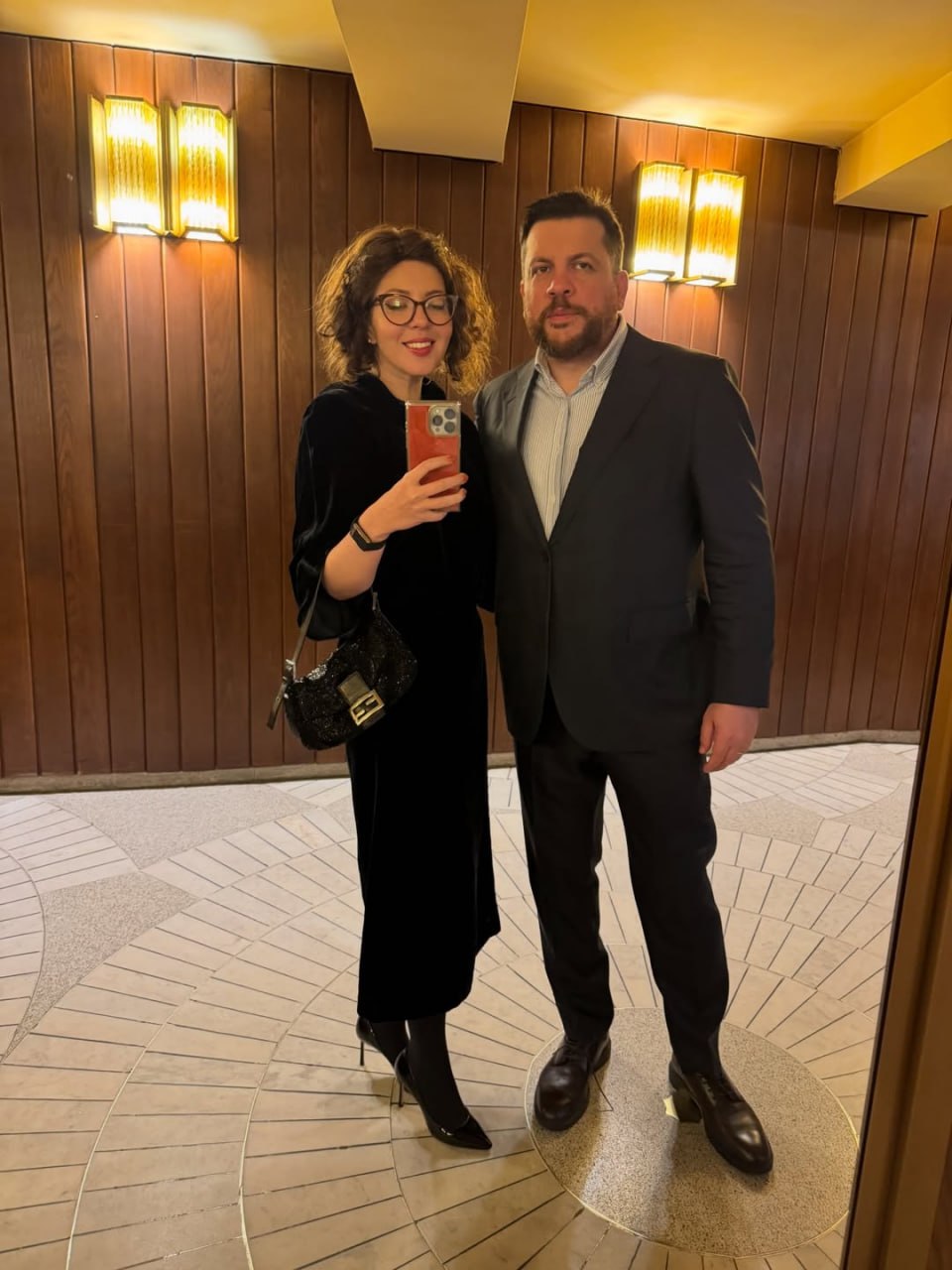 Фото сделано в Литовском национальном театре оперы и балета. Сумку Fendi Baguette легко опознать по характерной пряжке: аксессуар популярен у светских львиц наподобие Перис Хилтон, Сары-Джессики Паркер и т.д.